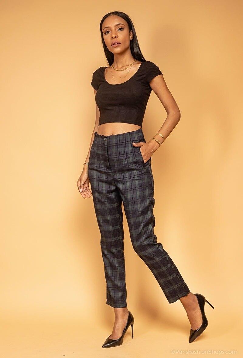 Jacquard tile tailor pants, high waist, couture detail, real pockets can be worn with the Blazer V3191. The mannequin measures 168 cm and door of the S, which corresponds to a 36. Etreed length of the S = 63 cm.