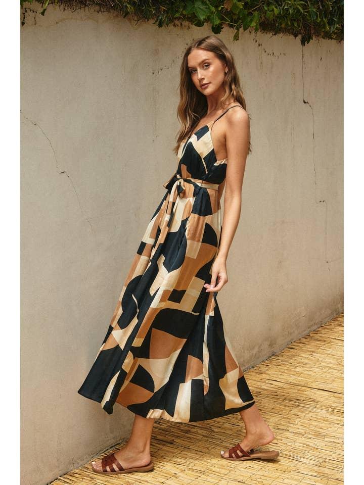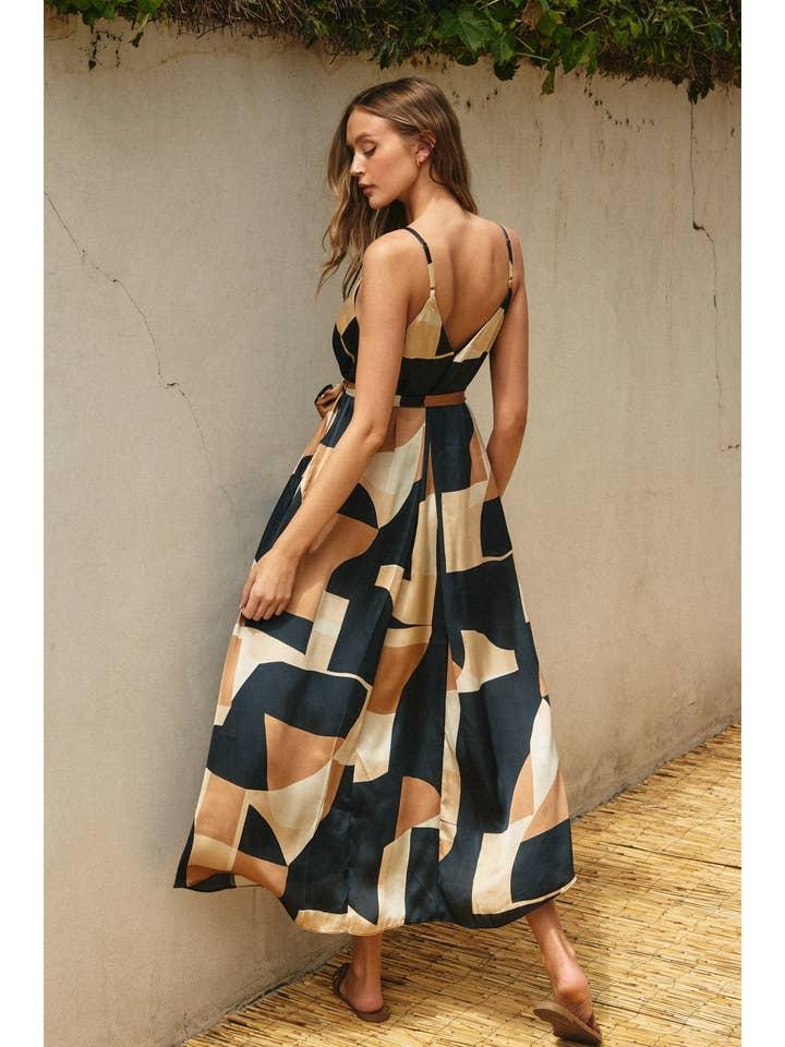 Rating Select ratingGive it 1/5Give it 2/5Give it 3/5Give it 4/5Give it 5/5 Geometric print maxi dress with extreme flared hem. Model is 5'10" and wearing size Small.- Dramatic A-line- Detachable belt- Slender shoulder straps- V-neck on front and back- UnlinedShell: 100% Polyester Lining: None Price $68.99 - 50.01% $34.49 Color Tan Sizes Small Medium Large Quantity