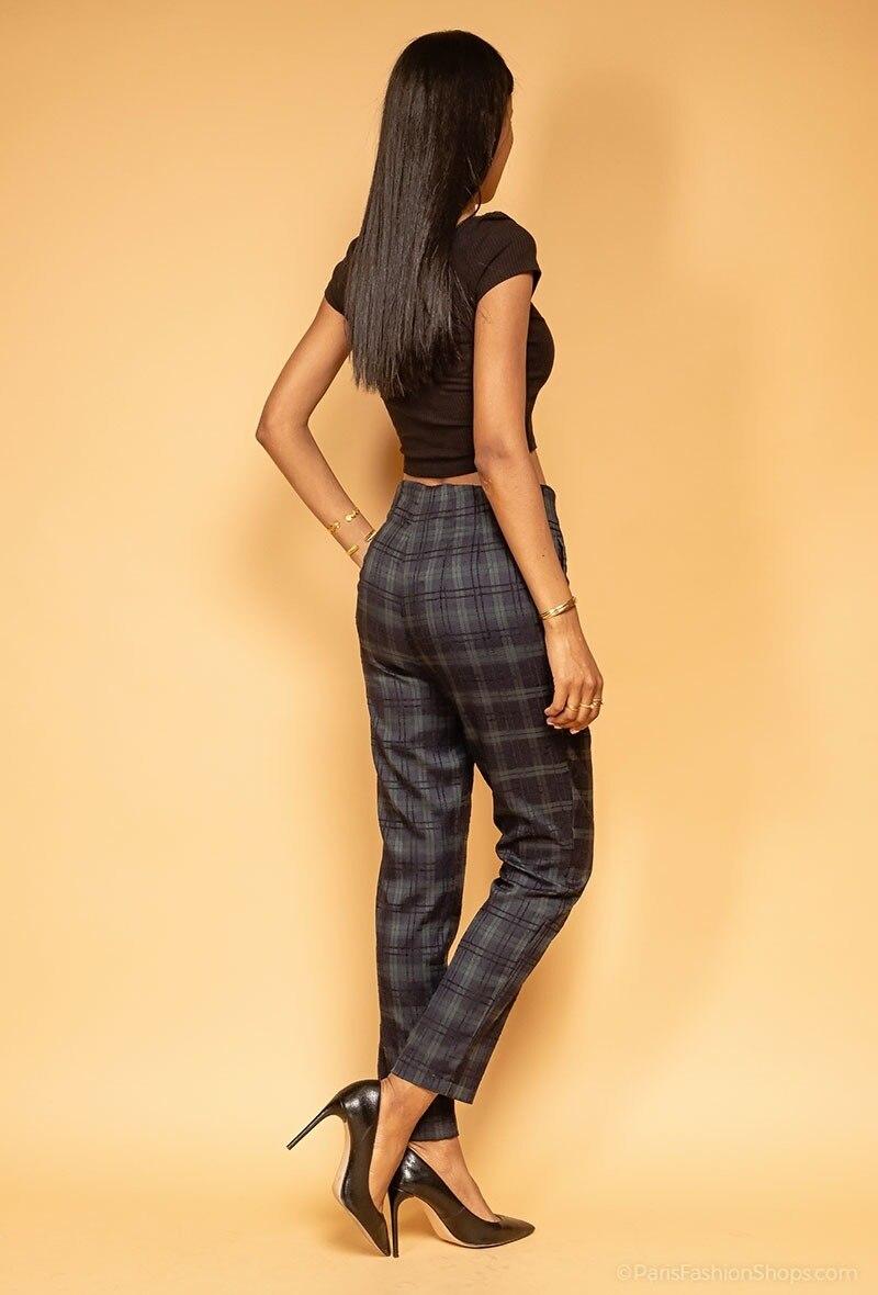 Jacquard tile tailor pants, high waist, couture detail, real pockets can be worn with the Blazer V3191. The mannequin measures 168 cm and door of the S, which corresponds to a 36. Etreed length of the S = 63 cm.